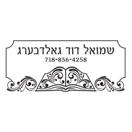 An ornamental book design frame for a sefer, book or anything else. Can be customized in Hebrew or English. Fits name and phone number as shown on image.