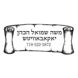 A scroll design frame for a sefer, book or anything else. Can be customized in Hebrew or English. Fits name and phone number as shown on image or up to three lines of any custom text.