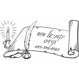 Scroll candle and feather design, for a sefer, book or anything else. Can be customized in Hebrew or English. Fits name and three lines of text as shown on image.